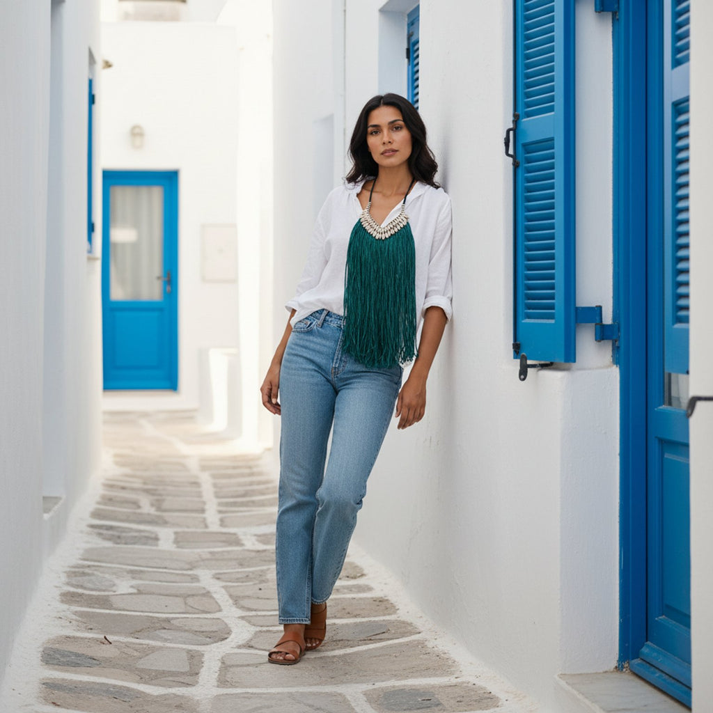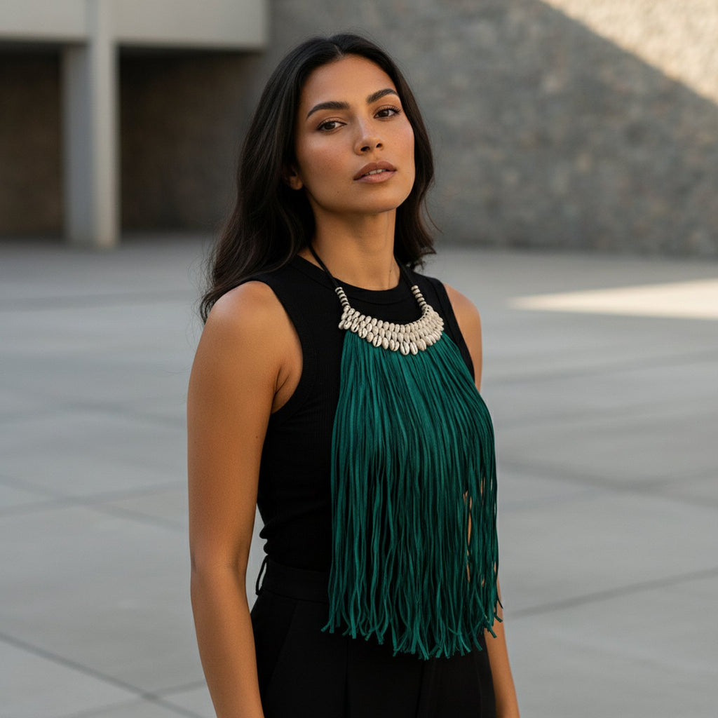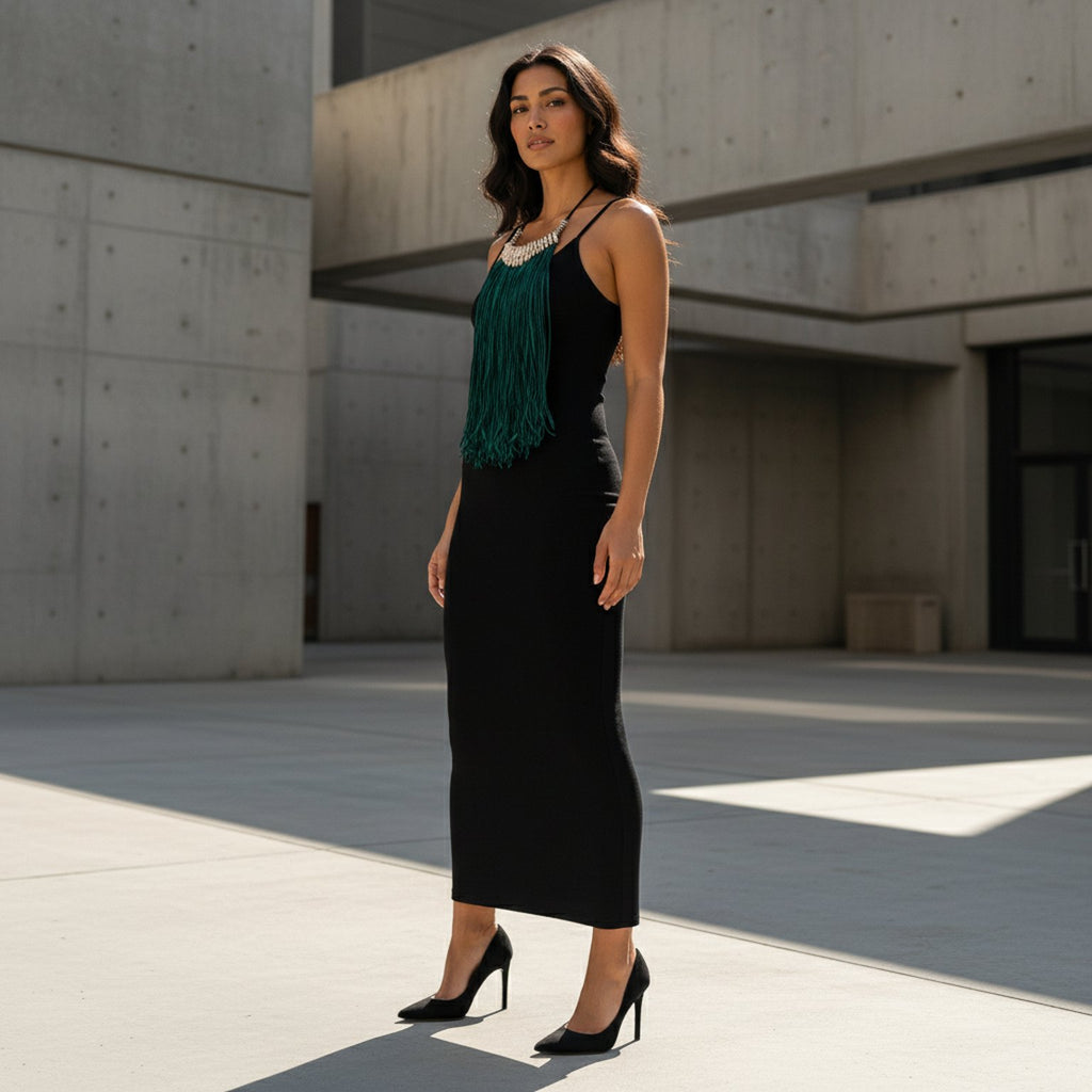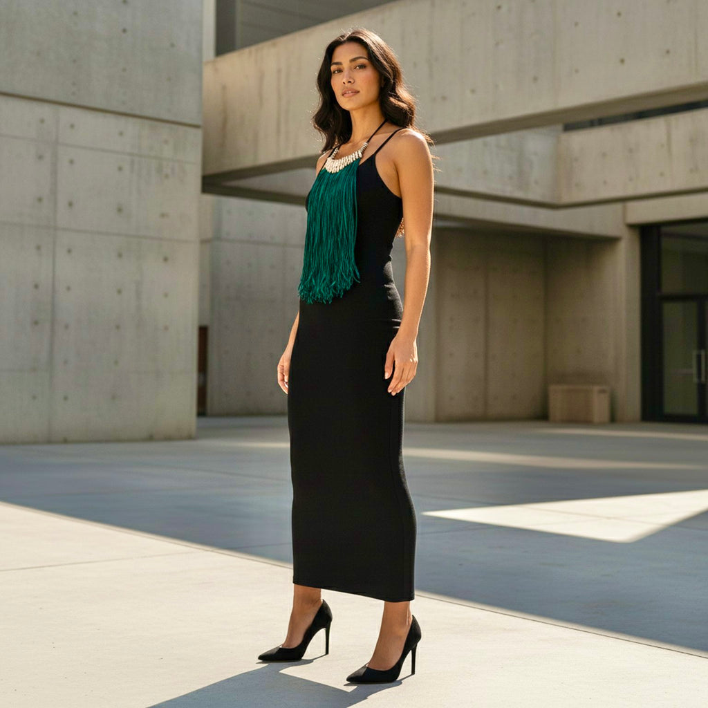 Make a bold statement with little effort. Throw on this unique stunning long leather beautifully crafted neck piece for a maximum look with minimal effort. Let your imagination go wild on how you wear this piece. Keep accessories to a minimum for a clean classy silhouette. You may want to pick one other piece of jewellery like a bold ring like the ones we have in our shop (search “rings”) or bracelets.