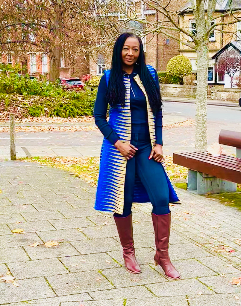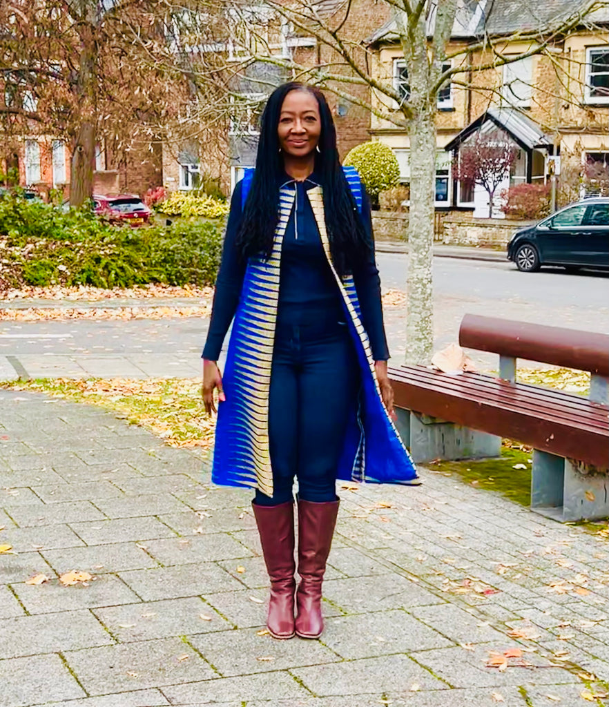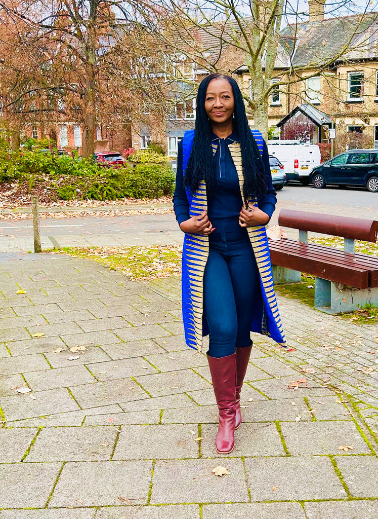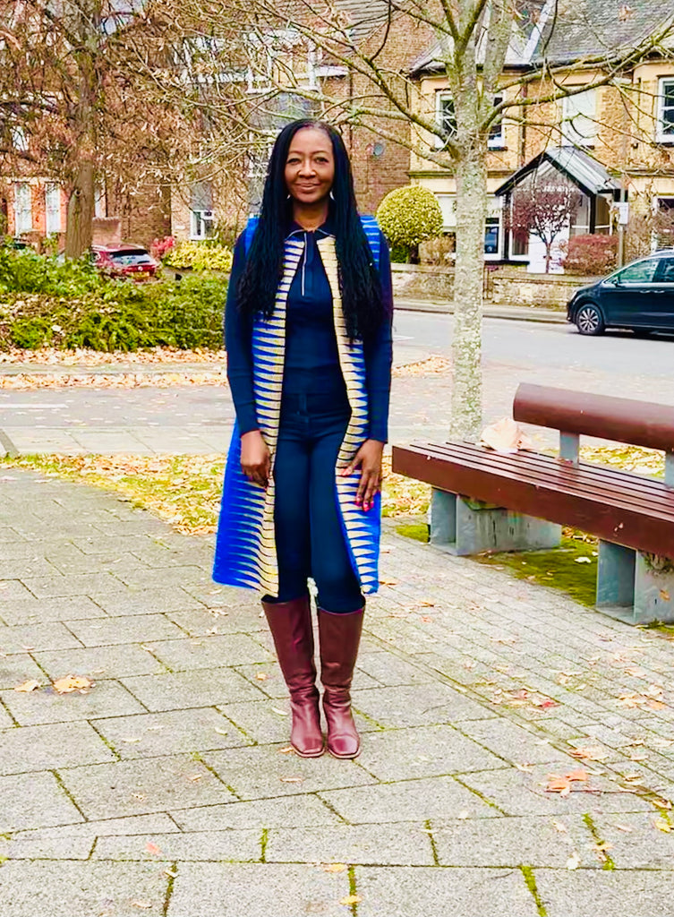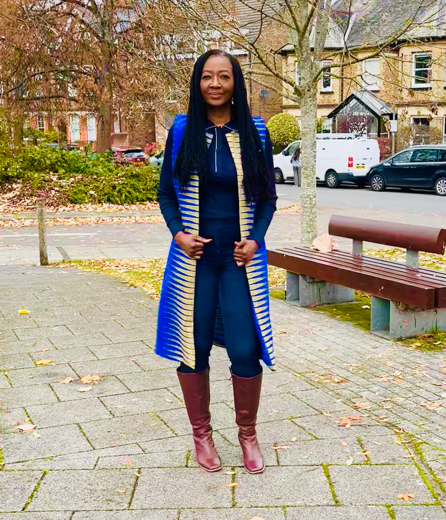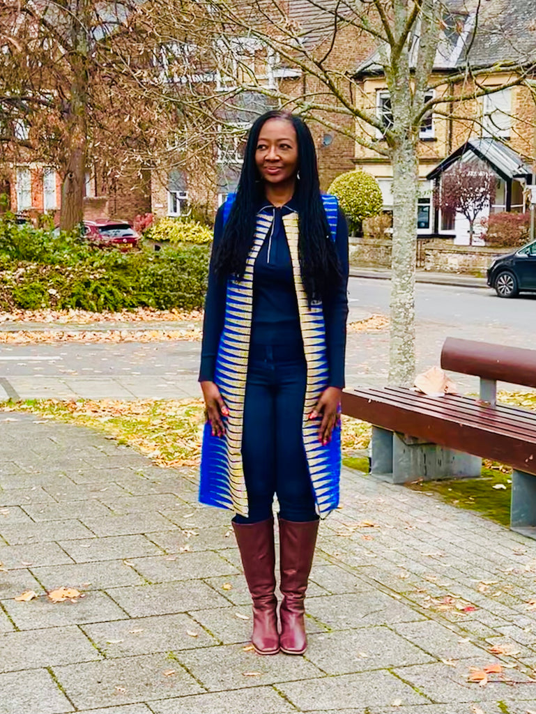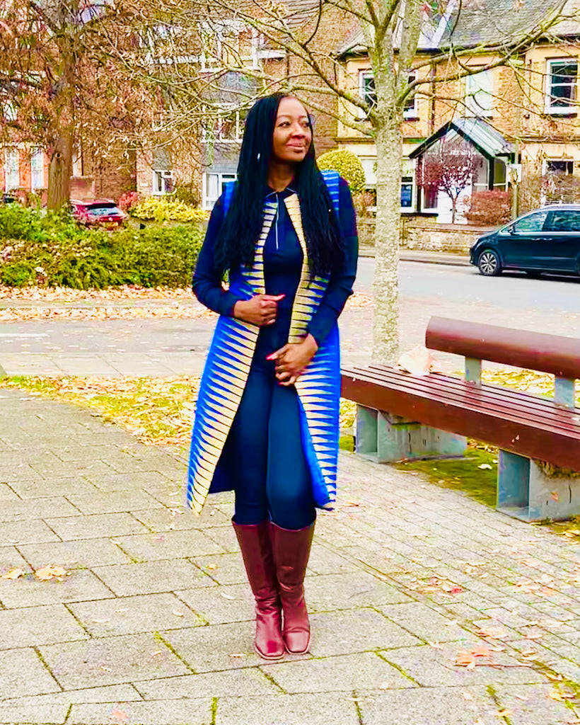 Our longline waistcoat in a beautiful geometric African print is a wardrobe must have for an instant smart look. Dress it up or down to suit the occasion. Layer it with a shirt for a formal business look or a turtle neck or even a dress for that effortless smart casual look. It pairs well with a fitted skirt and jeans or pants.